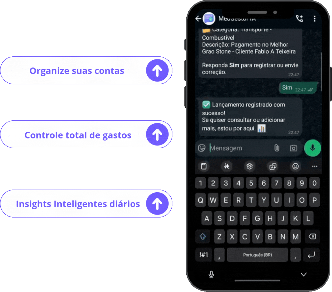 Transforme sua rotina financeira com praticidade e controle através do seu WhatsApp